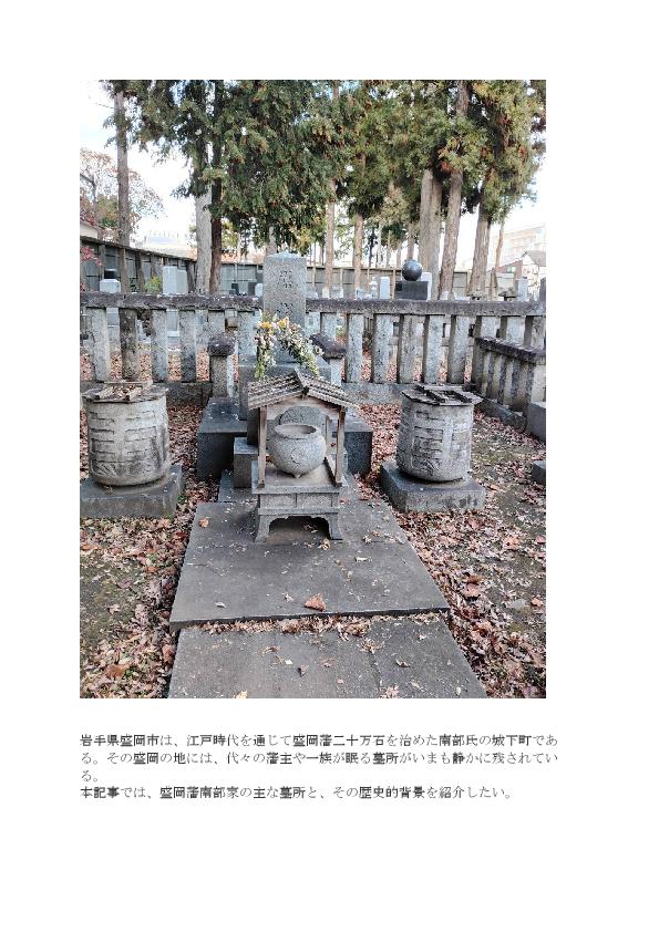 盛岡藩南部家の墓所は、単なる史跡ではなく、藩の歴史・価値観・人物像を今に伝える生きた歴史資料である。